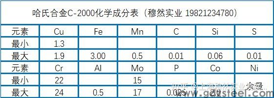 哈氏合金C2000成分