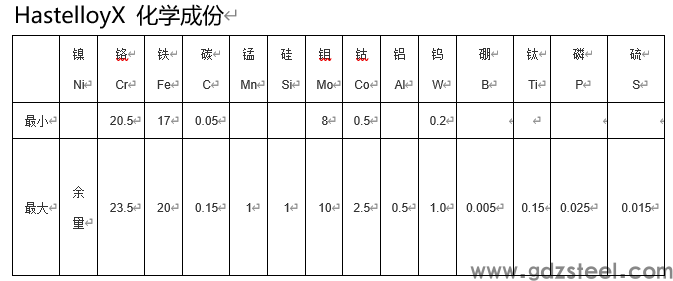 GH3536、GH536(我国)、NC22FeD(法国的)、.2.4665、NiCr22Fe18Mo(法国)、HastelloyX、UNS N06002(英国) NiCr21Fe18Mo9(ISO)